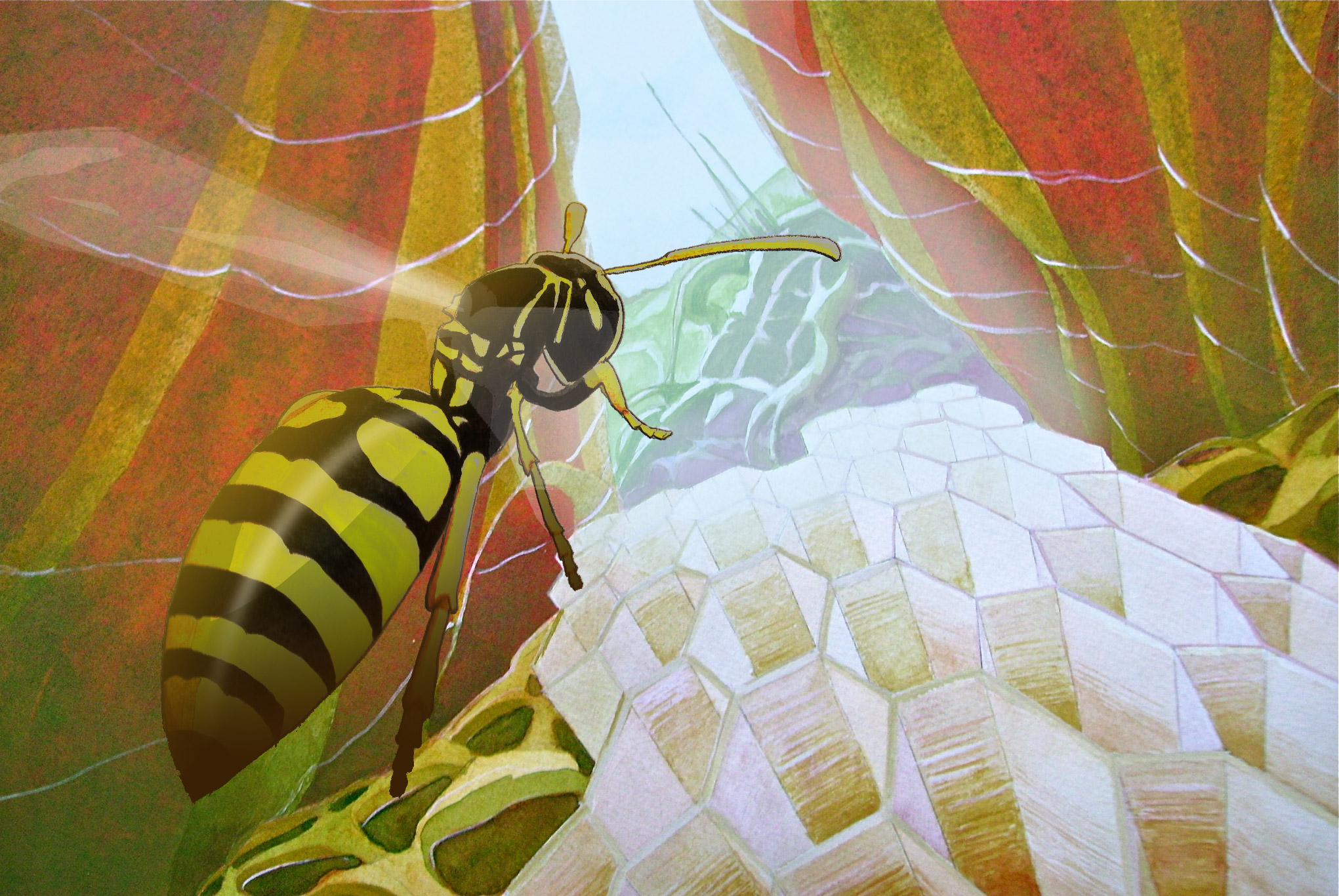 J’ai intégré les ailes avec des calques semi-transparents, placé quelques ombres propres sur l’insecte.