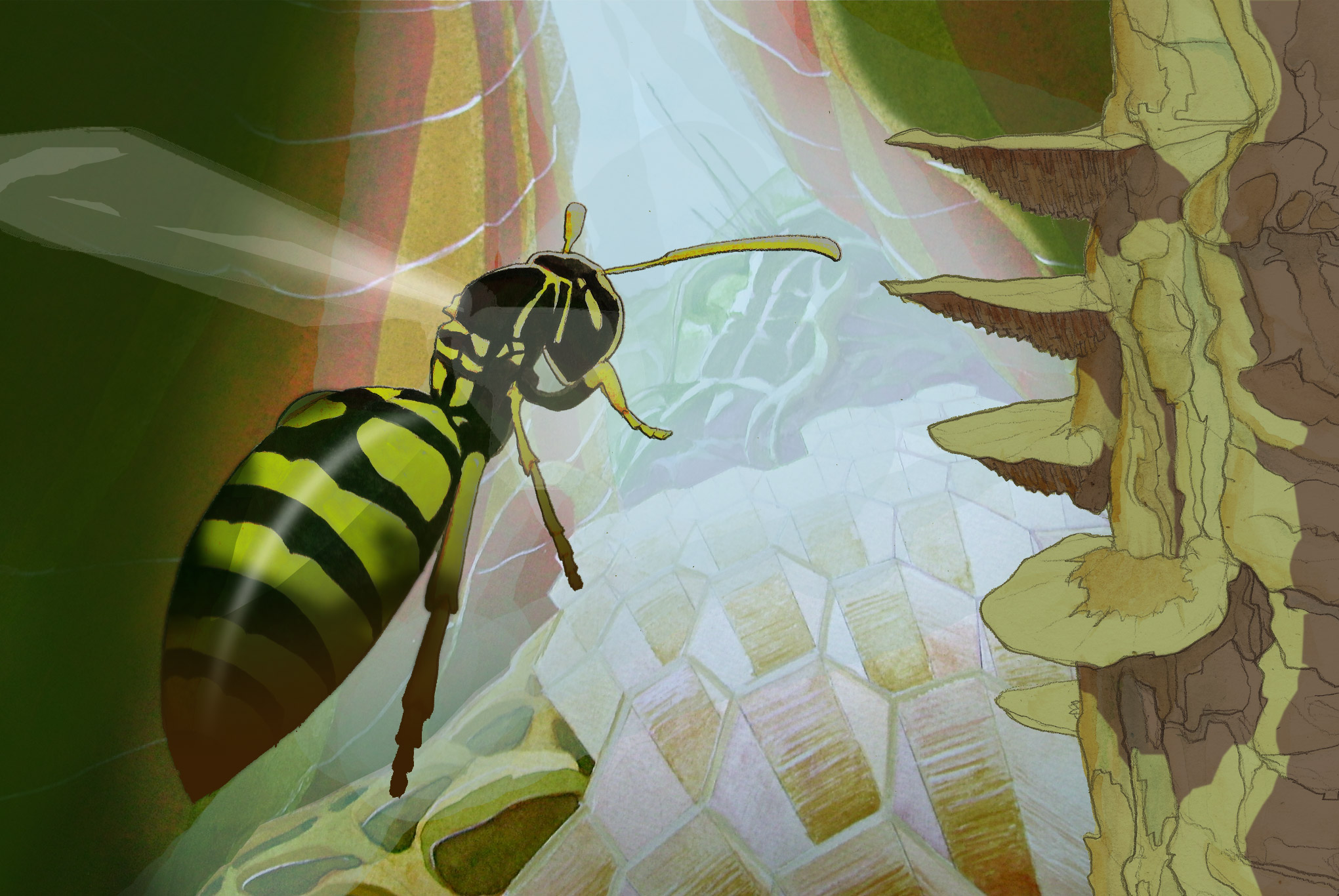 Ayant été décorateur de dessins animés, je me suis remis sur le décor, le temps d’une planche pour voir ce que cela donnait en couleur.